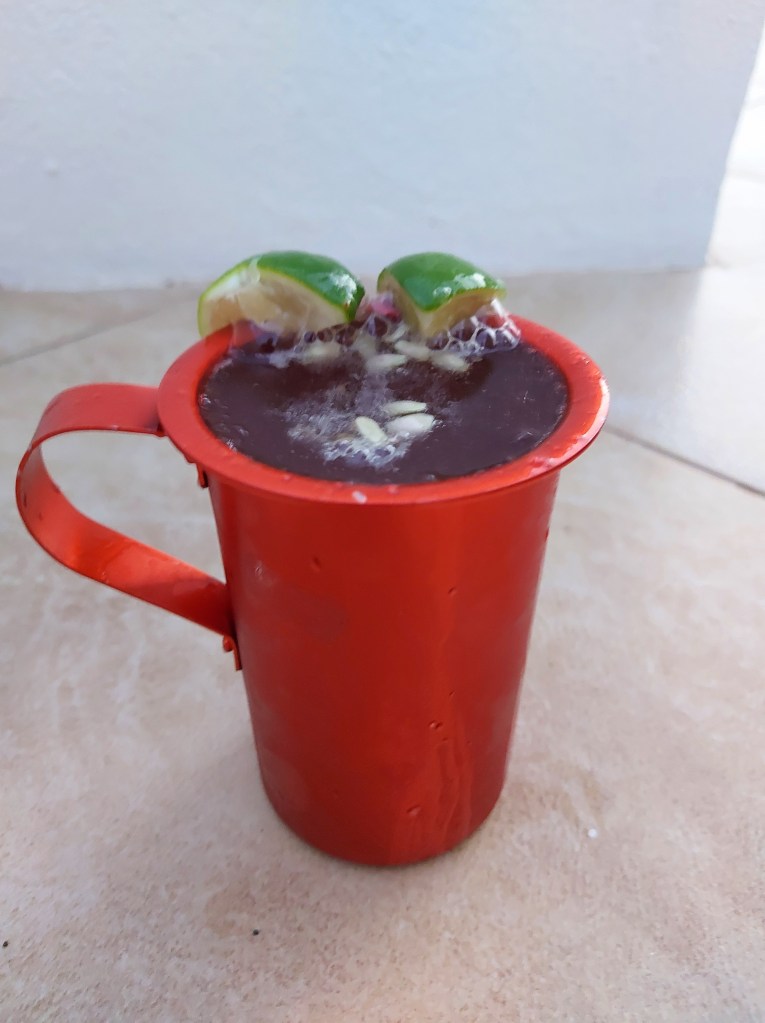To make a Mesudiye Mule, pour 50 ml of fig vodka into a metal beaker filled with ice (we used a Greek aluminium wine jug as no copper mug was available), add 200 ml almond soda water and the juice of two green lemons. Garnish with a slice of lemon and serve with the freshest almonds you can find – cheers!