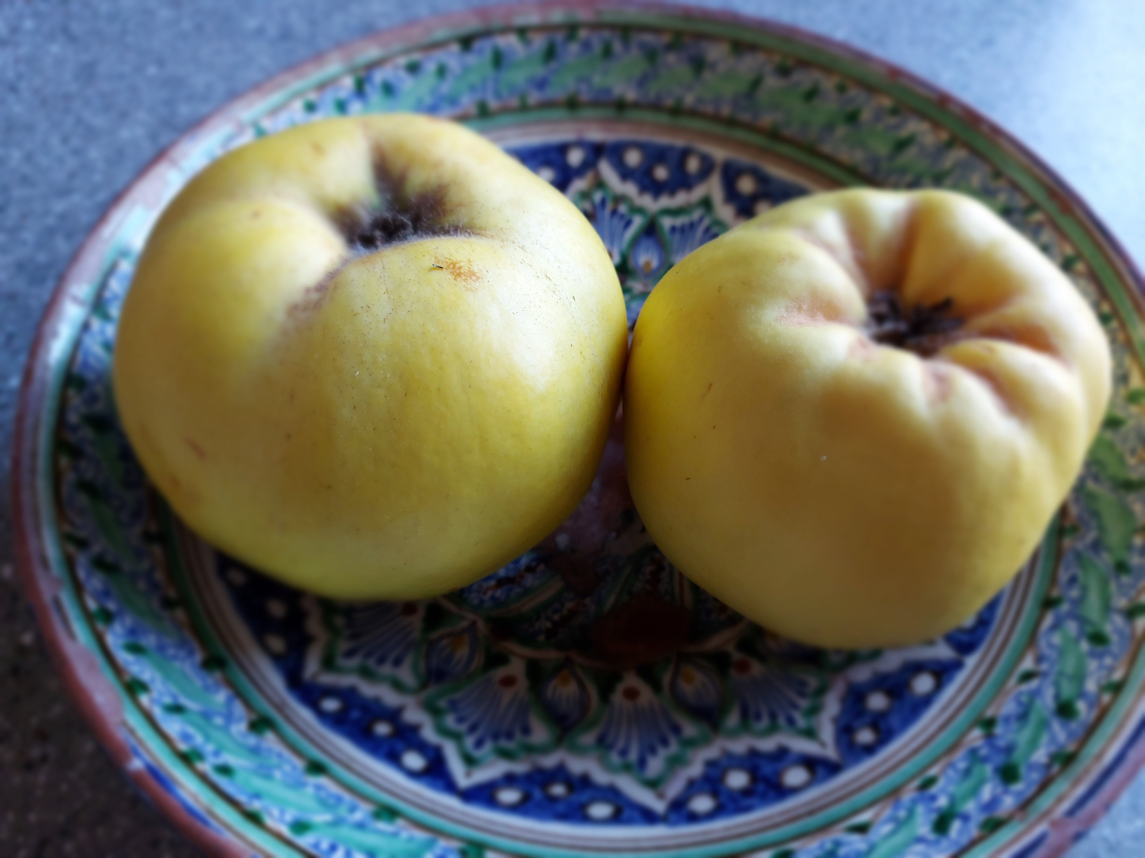 When cooked, quince turns from a yellow hue to a deep amber colour. In Spain, quince is the base for ‘Membrillo‘, a sweet jelly that is served with Manchego cheese. In Turkey, which accounts for more than a quarter of the world’s quince crop, it can often be found stewed in syrup as part of a classic Turkish breakfast spread alongside cheese and olives or baked in the oven and served with clotted cream. It’s also popular in Uzbekistan – we once had a plov garnshed with quince slices and cashews.