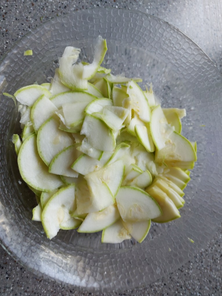 - 500 g courgette – thinly sliced with a potato peeler or similar