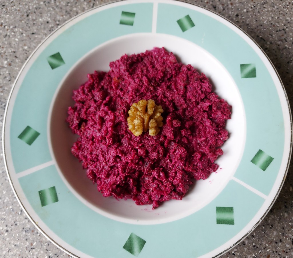 In the past, we’ve made a turmeric-infused hummus and one from red beans, now here’s our latest variation. Beetroot is one of our favourite root vegetables, and it’s really good for you to boot. Taking some tips from Georgia, where a similar dip called pkhali is a regular feature on the dinner table, we’ve added some walnuts to give this hummus an extra protein boost.