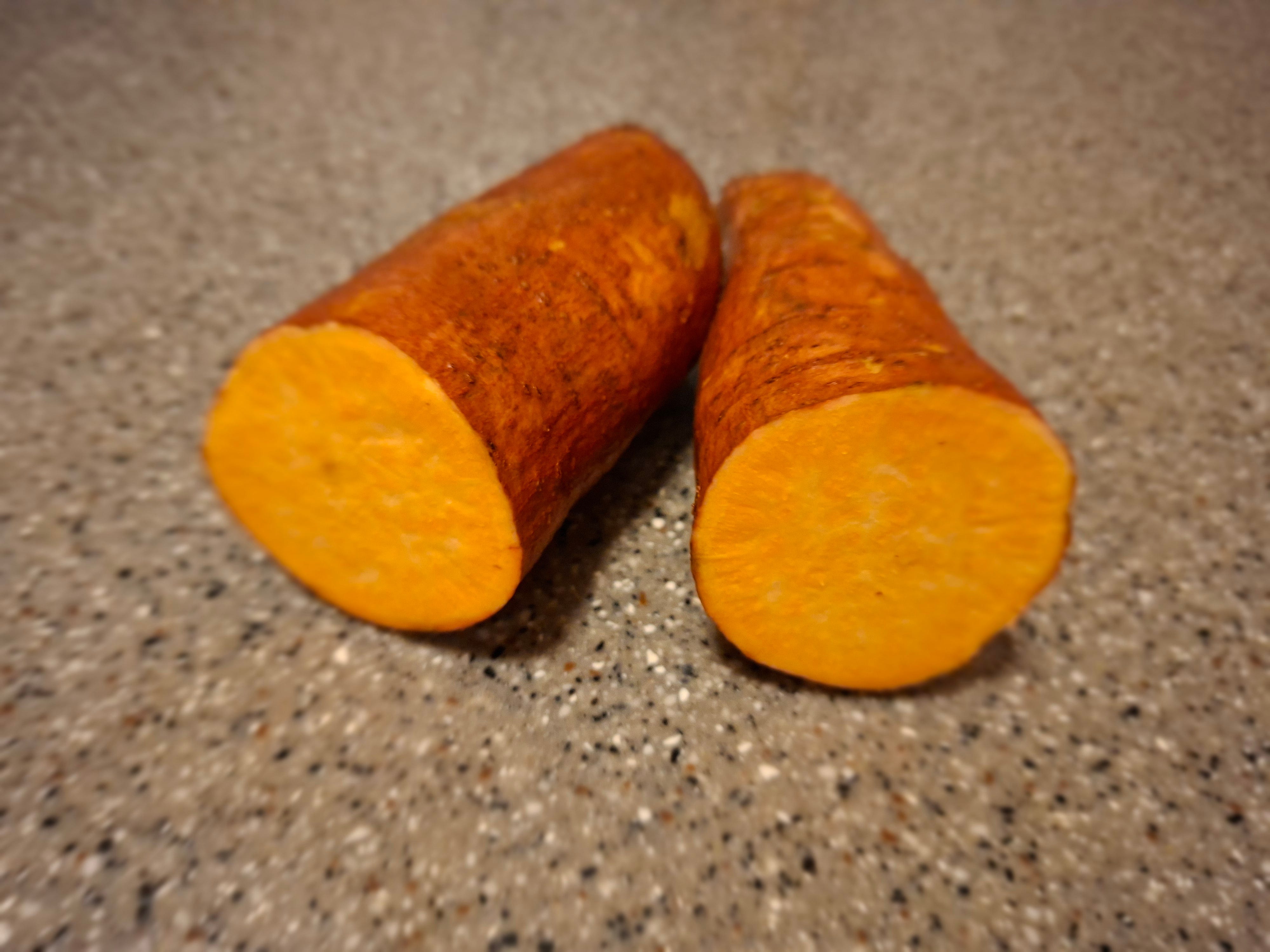 Cook the sweet potato in an air fryer at 200 c for 10 minutes, give the basket a shake after 5 minutes. If cooking in an oven, cook for 20 minutes at 200 c.