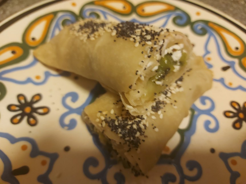 - Roll out the other piece of pastry, brush the 1 cm edge of the pie with olive oil and then place the larger piece of pastry over the top of the nut and pkhali mix and then crimp down the edges with a fork. Brush the pie with olive oil and bake in an oven heated to 180 c for 30 minutes or until the pie is a golden brown colour.